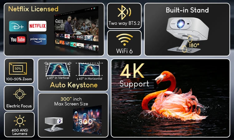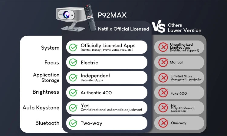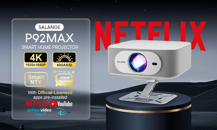 Salange Netflix Projector P92MAX Smart Android 13 1080P BT5.2 WiFi6 12000L Electronic Focus Auto Keyston 4K Movie HD Home Cinema
